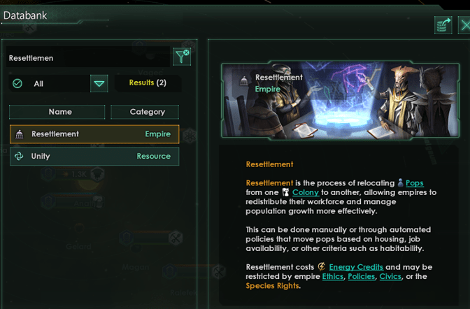 I say this with a great deal of respect and appreciation that Stellaris is still getting new and updated mechanics nine years after being released. The game doesn’t provide good information on how and why pops move in game. As the gallery below shows resettlement (2), emigration (1), and immigration (0) don’t appear in the Databank as of 8/31/2025. Unlike some other mechanics that can just be ignored if you’re not using them Migration Treaties are one of the few areas of the game where the NPC empires suggest (over and over) that you accept if you have good terms with them.