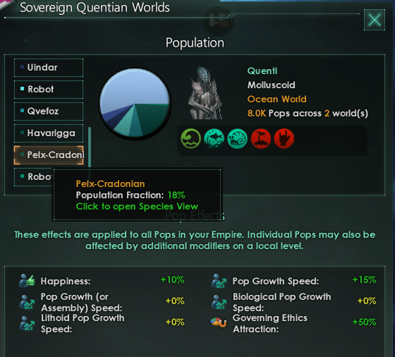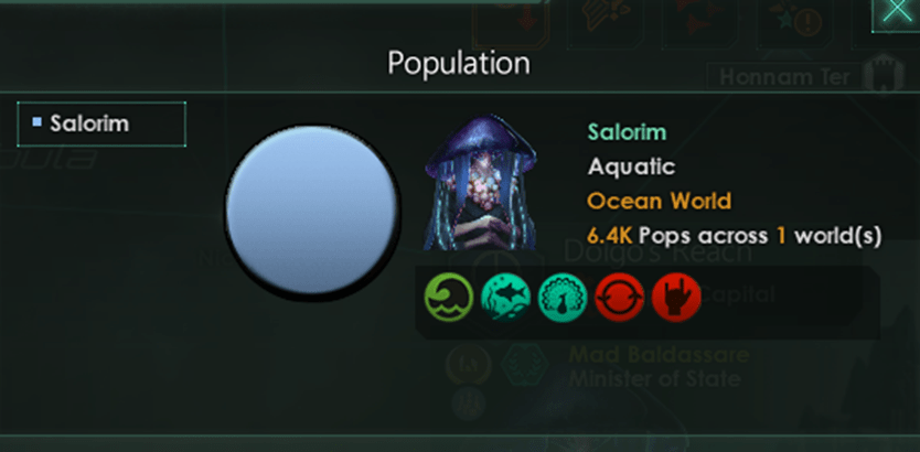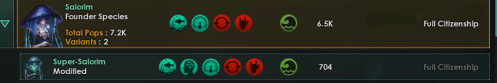 Demographically I had a pure empire full of my founding species. However, I wanted to have an exchange (in my favor) between our two species and only found that my Salorim are moving away from what I thought was perfection.