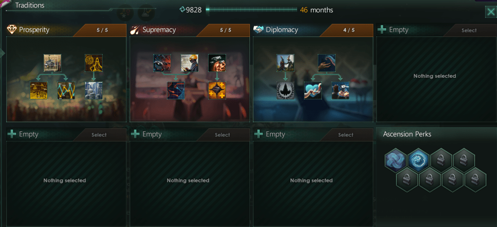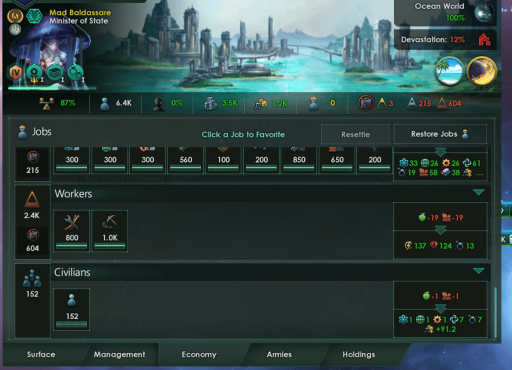 Jobs – This is an easy one to fix but finding new ways to get additional jobs on your worlds can be a little hard. Functional Architecture and Prosperity become a much more important Civic/Tradition set to increase the speed that you can build new districts. Remember, if you don’t have open jobs a migration treaty is only going to serve to reduce your